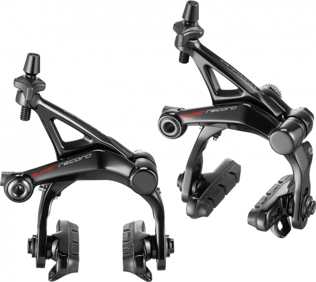 Vorder- und Hinterradbremse mit maximaler Bremswirkung, die Campagnolo Super Record Dual Pivot Bremsen jetzt perfect auch auf breitere Felgen und Reifen ausgelet. Die Bremsen sind kompatibel mit allen gaengigen Schaltbremshebel und Bremshebeln, auch anderer Hersteller.
