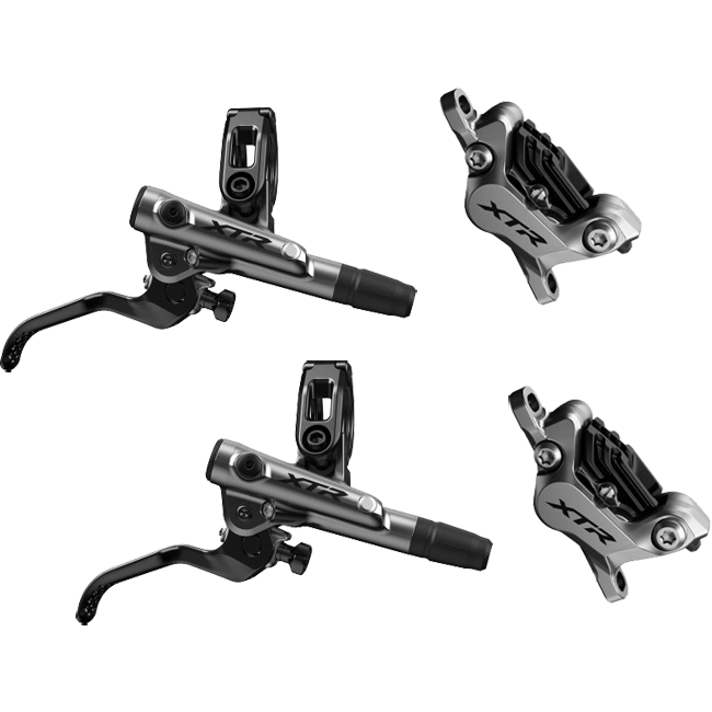 Die Shimano XTR Bremsgriff BR – M – 9020 mit dem griffigem Trail Bremshebel sind mit zylindrischem Ausgleichsbehaelter, super leichtgaengigen keramischen Kolben und der neuen Bremshebel Fuehrung fuer deutlich ergonomisches Handling ausgestattet. In Verbindung mit den neuen Monoblock 4 Kolben Bremssaetteln BR – M – 9120 mit oversize Kolben und den neuen besonders gut waermeableitenden Bremsbelaegen.
