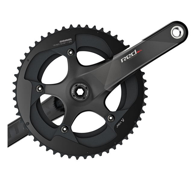 Im Lieferumfang Sram Red Exogram Kurbelarme, rechts und links Kettenblaetter, Kettenblattschrauben, Kurbelschraube. Das Innenlager wird extra angeboten.