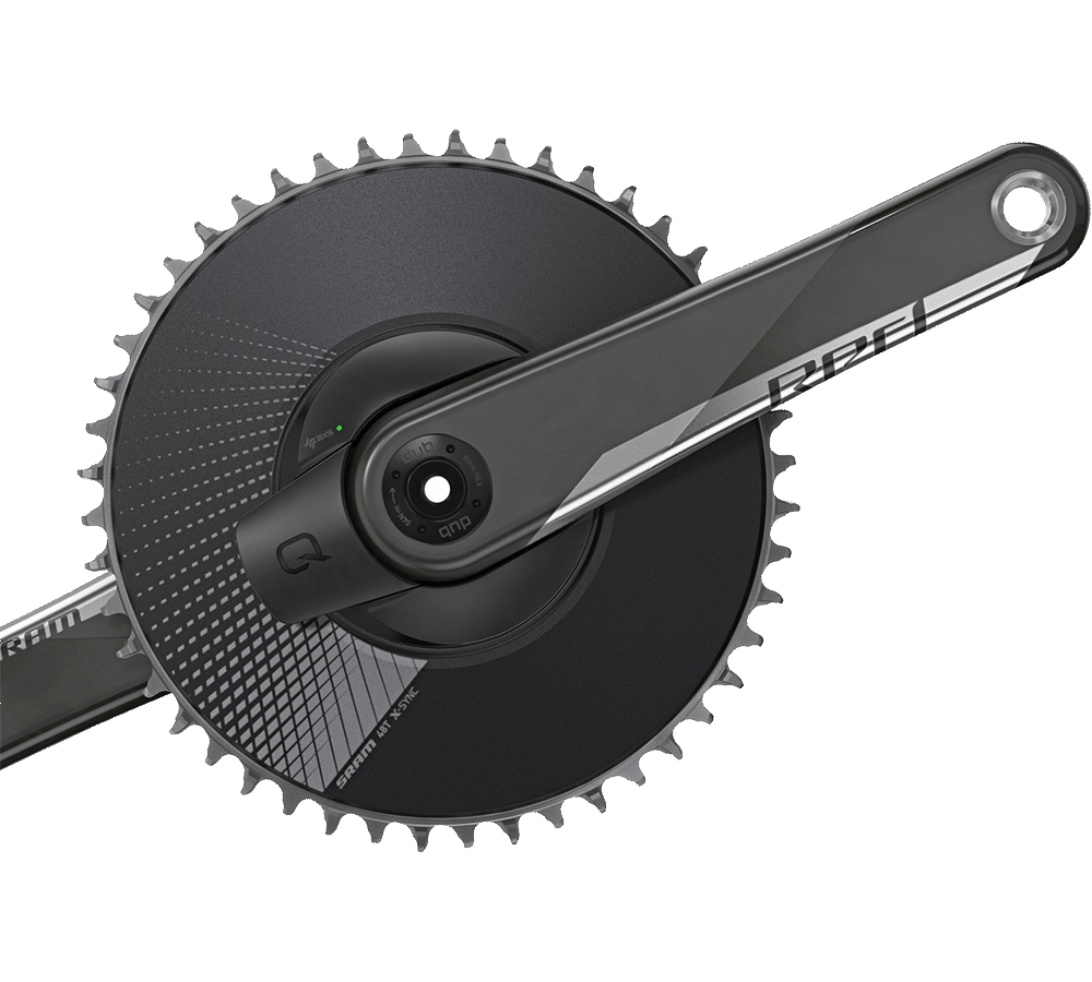 Der Quarq Powermeter fuer Timetrail und Triathlon Fahrraeder mit einem Kettenblatt.