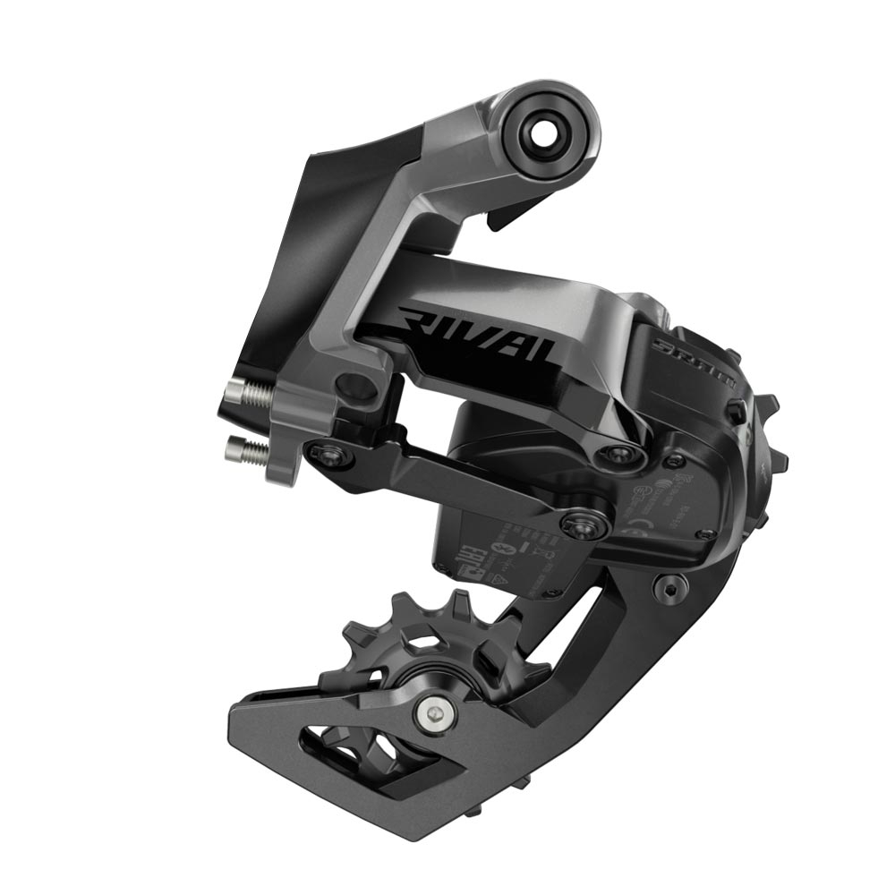 Das Sram Rival AXS eTap Schaltwerk ist mit allen AXS eTap Schalthebeln kompatibel. die maximal schaltbare Kassettengroesse betraegt 36 Zaehne, die Schaltkapazitaet betraegt 39 Zahene