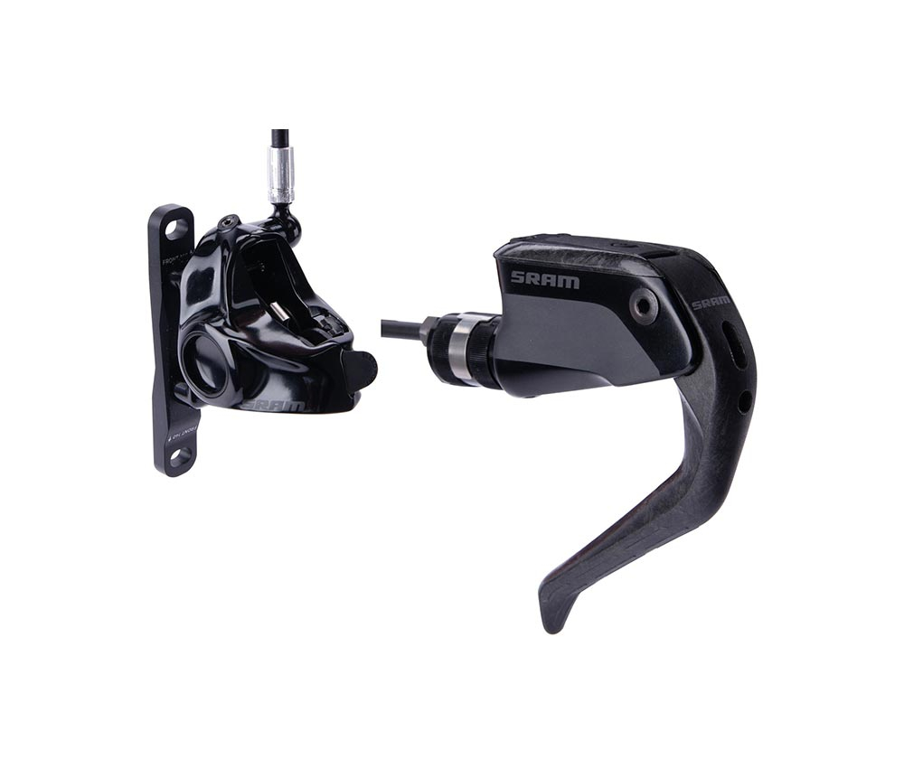 Die Scheibenbremsen aus der Flat Mount Serie, ausgelegt fuer Bremsscheibengroessen bis 160 mm. Die hydraulische Sram Scheibenremse bietet beste Bremsleistung mit geringsten Betaetigungskraeften und feinster Dosierbarkeit. Der Kraft- und Reibunsverlust der bei klassischen Seilzugbremsen durch die Seilzuguebertragung entsteht ist bei diesem System ausgeschlossen. Die Bremsleistung ist unter allen Witterungsbedingung gleich. Dank der Trennung von Felge/Reifen und Bremsflaeche werden die Probleme mit der Hitzeentwicklung elegant geloest.